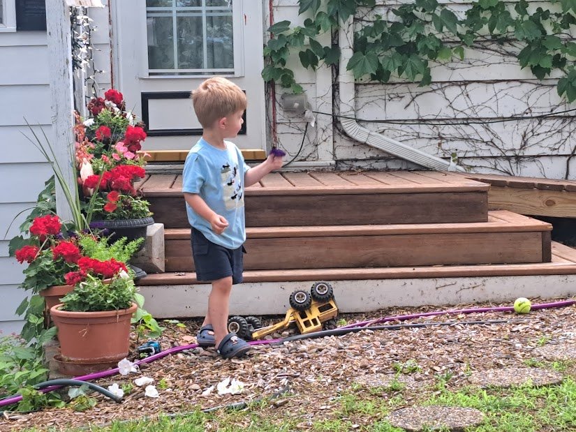 This guy likes to pick petunias.  They grow back, no harm in it.