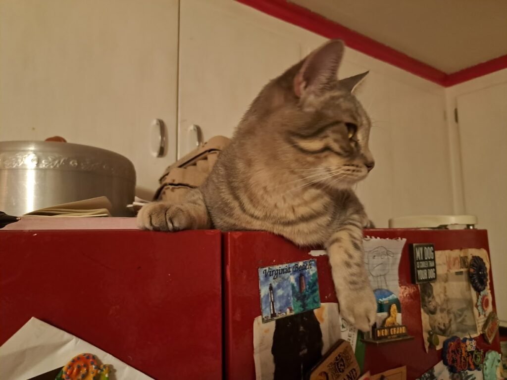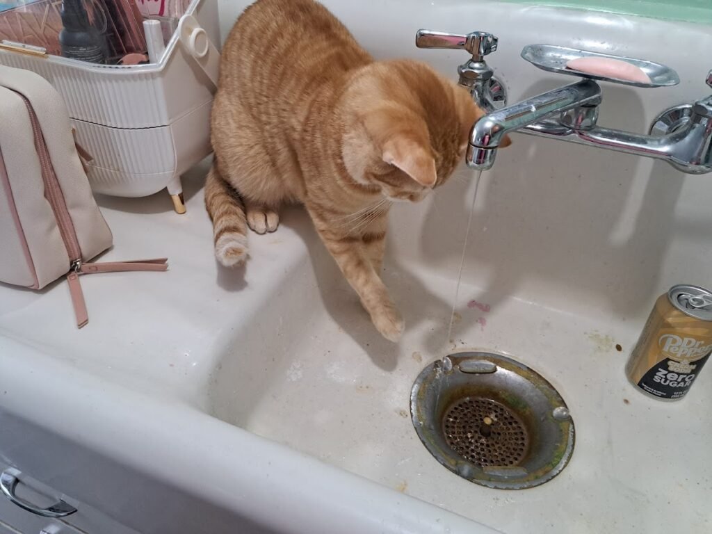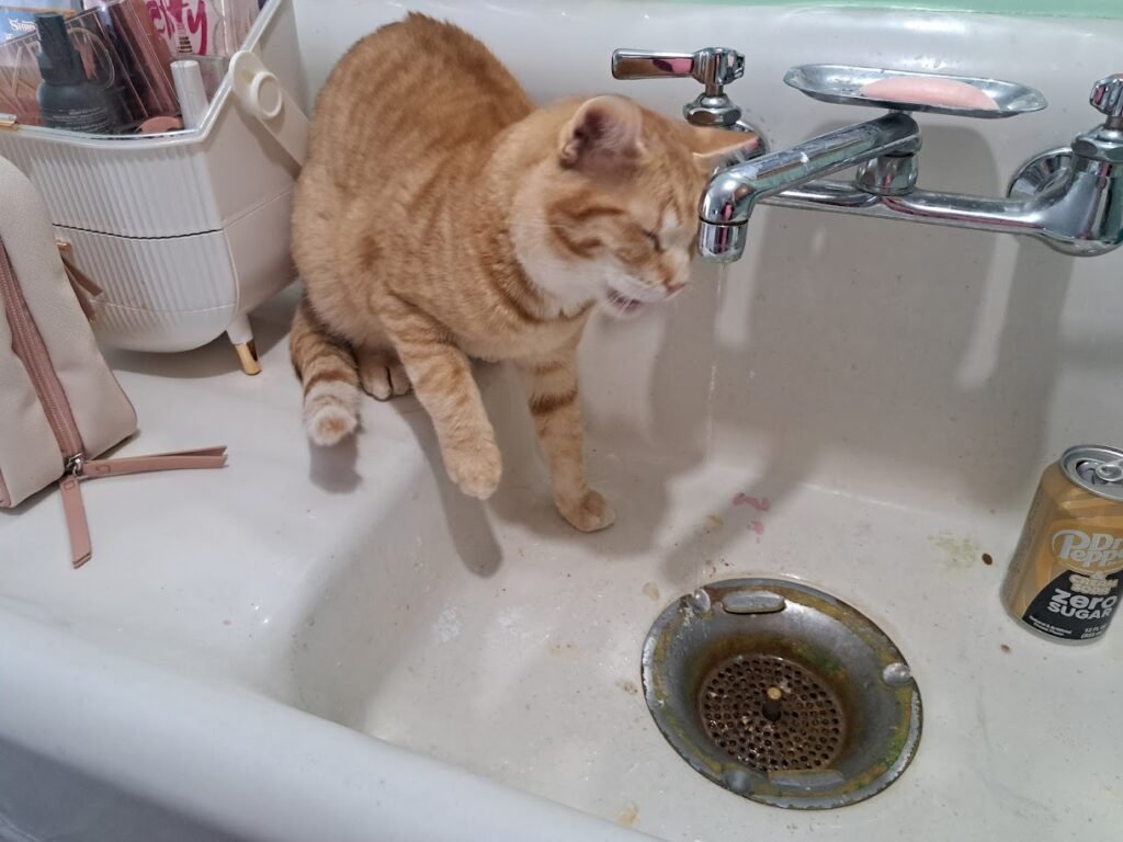 They love playing in the faucet.  This is the only thing–people talk about, “Oh the litter box,” but that doesn’t bother me.  (We’ve lived with turtle debris for decades.)    The only thing I dislike about the cats is how they don’t respect surfaces in the kitchen.