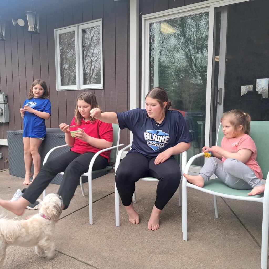 Jay had to get a tool from Joe, so we got to see these kids tonight. This is the first really nice day and evening so far this spring, warm, grass getting green, kind of wonderful. – So much love, Grandma