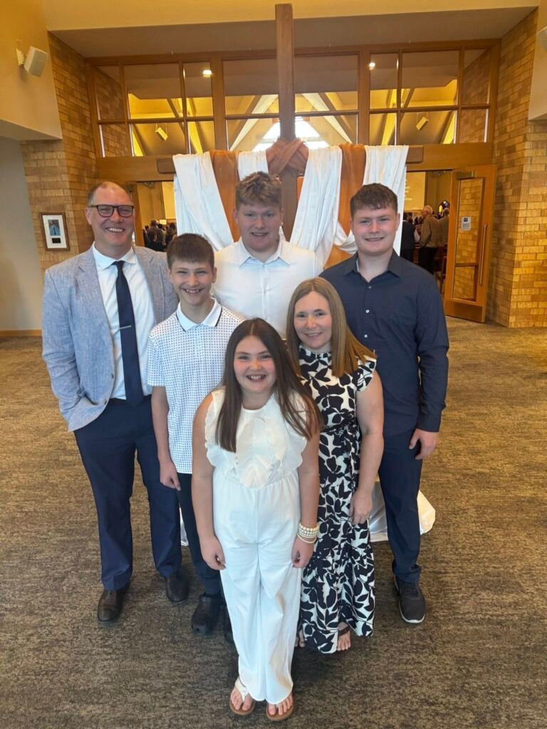 – – – It was a beautiful night for a special occasion at the Easter vigil at the church where the kids attend school. Congratulations on these special milestones, Love, Grandma and Grandpa