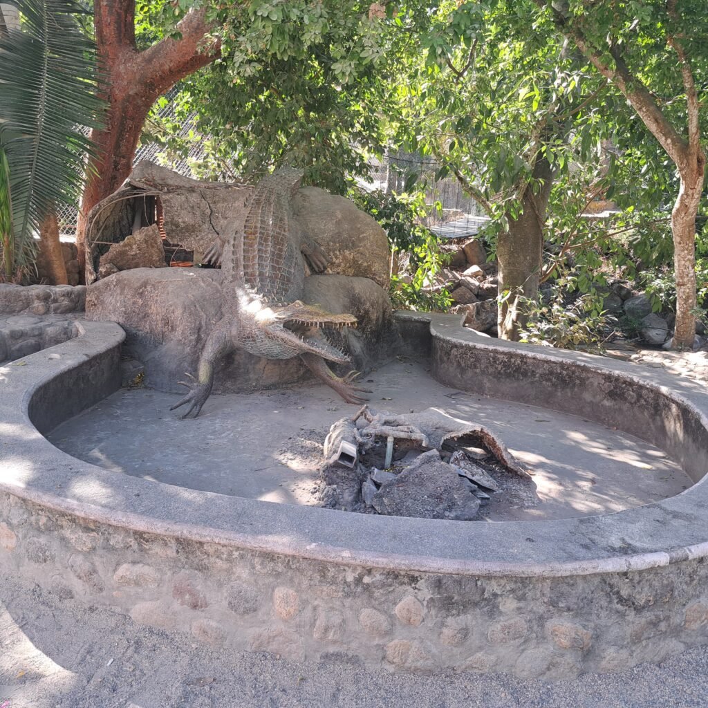 This goofy statue is on the walk up the hill to the butterfly sanctuary.