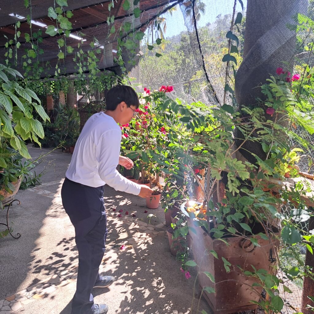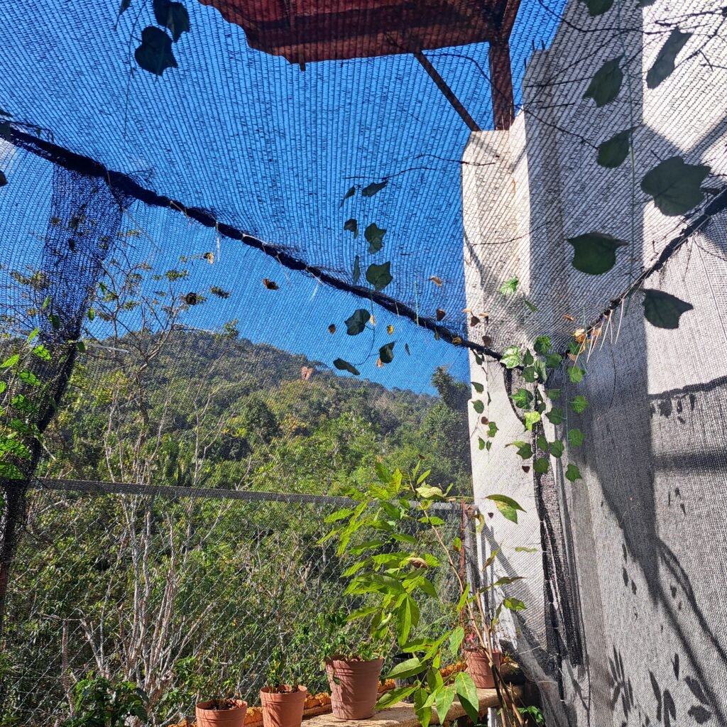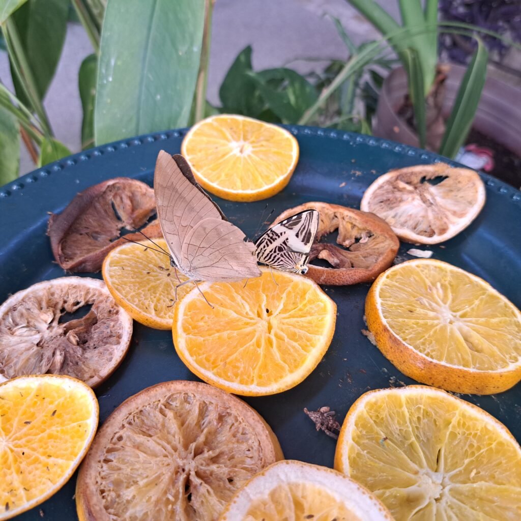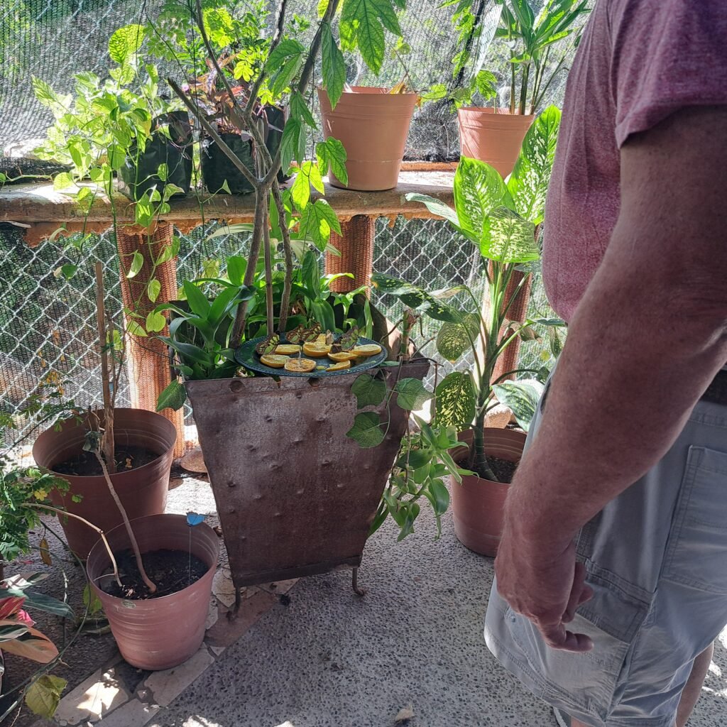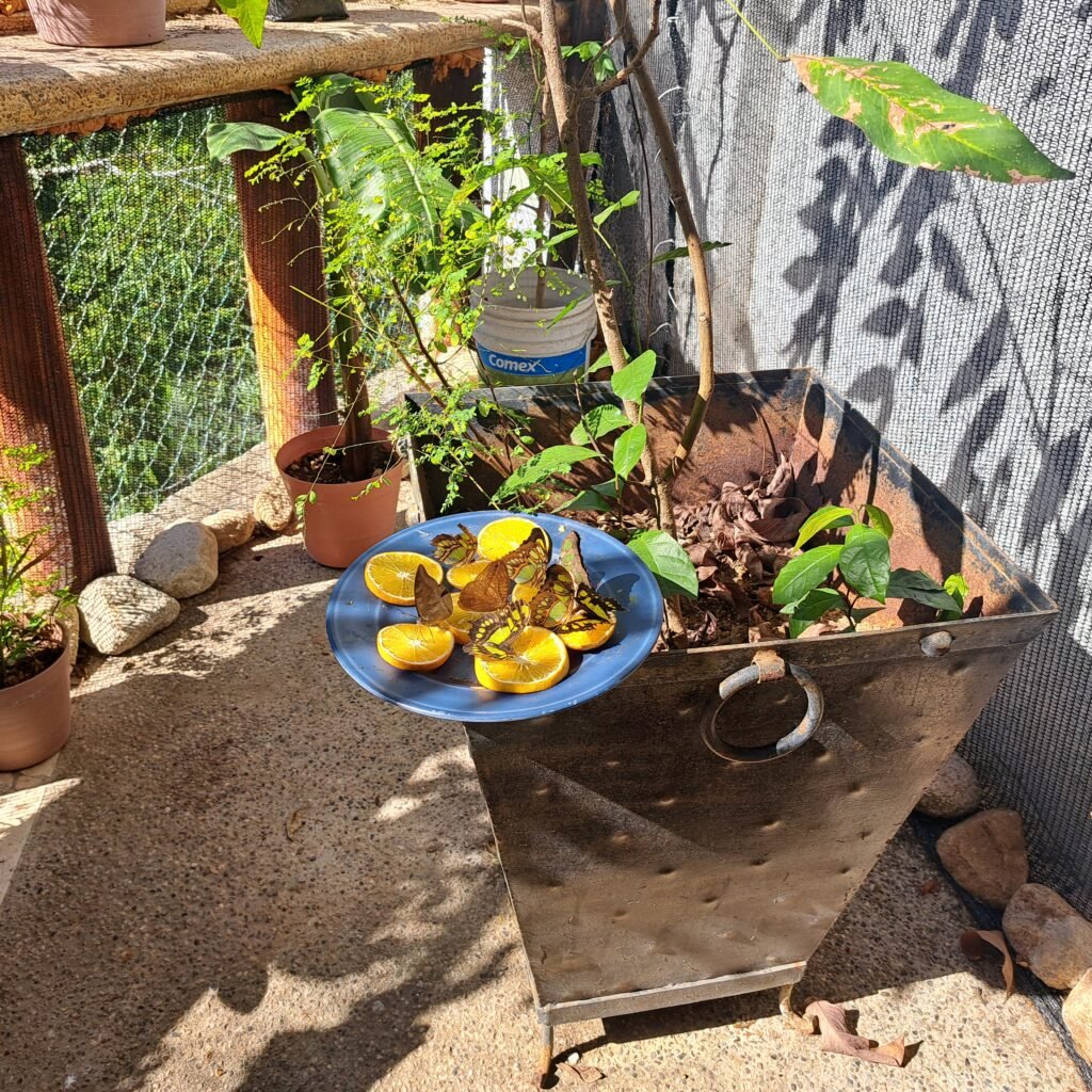 At the end of the tour the three of us stood together for long minutes listening to the gushing waterfall and watching them flutter from the orange slices to the leaves. She said, “I am so proud of this place.”