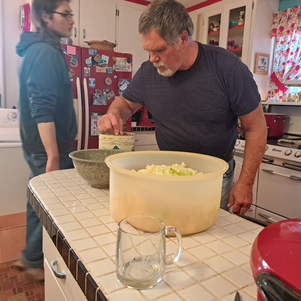 Potato salad and a big, fat chocolate cake