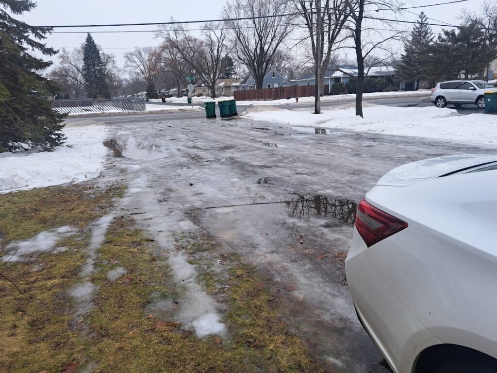 Jay’s working out of town so I had to bring back the trash cans–very carefully tippy toe in the ice, one by one.