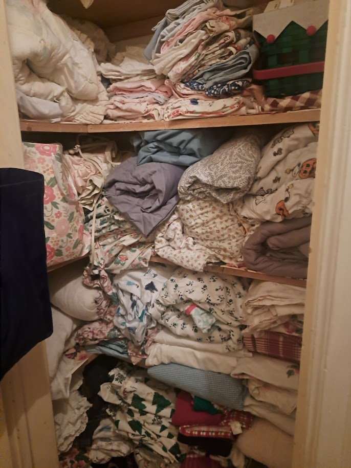 I had all the Christmas towels washed and folded, ready to put in the linen closet.