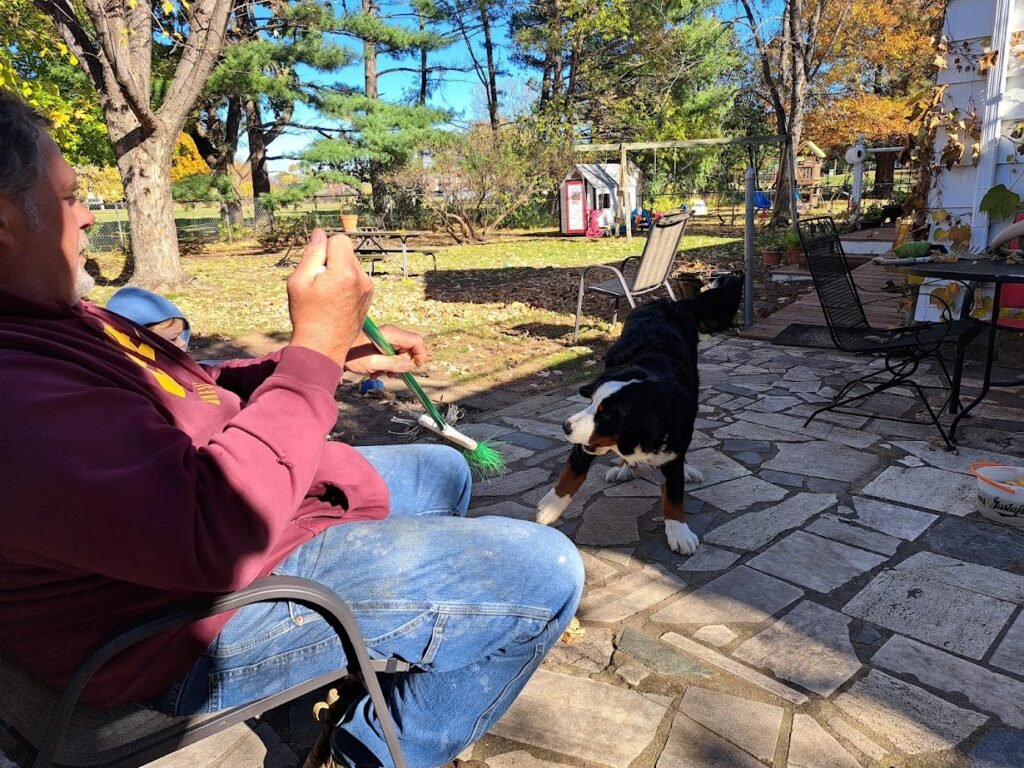 The broom serves as both self defense, and as a toy for Dani. She gets so carried away outside and she’s become very strong, and sometimes she’s a punk. Not this day she wasn’t, but sometimes she just gets too rough. But that’s how eight month old puppies are.
